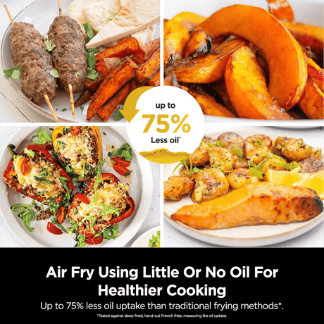 360° hot-air air fryer with dual knobs and safety auto-off