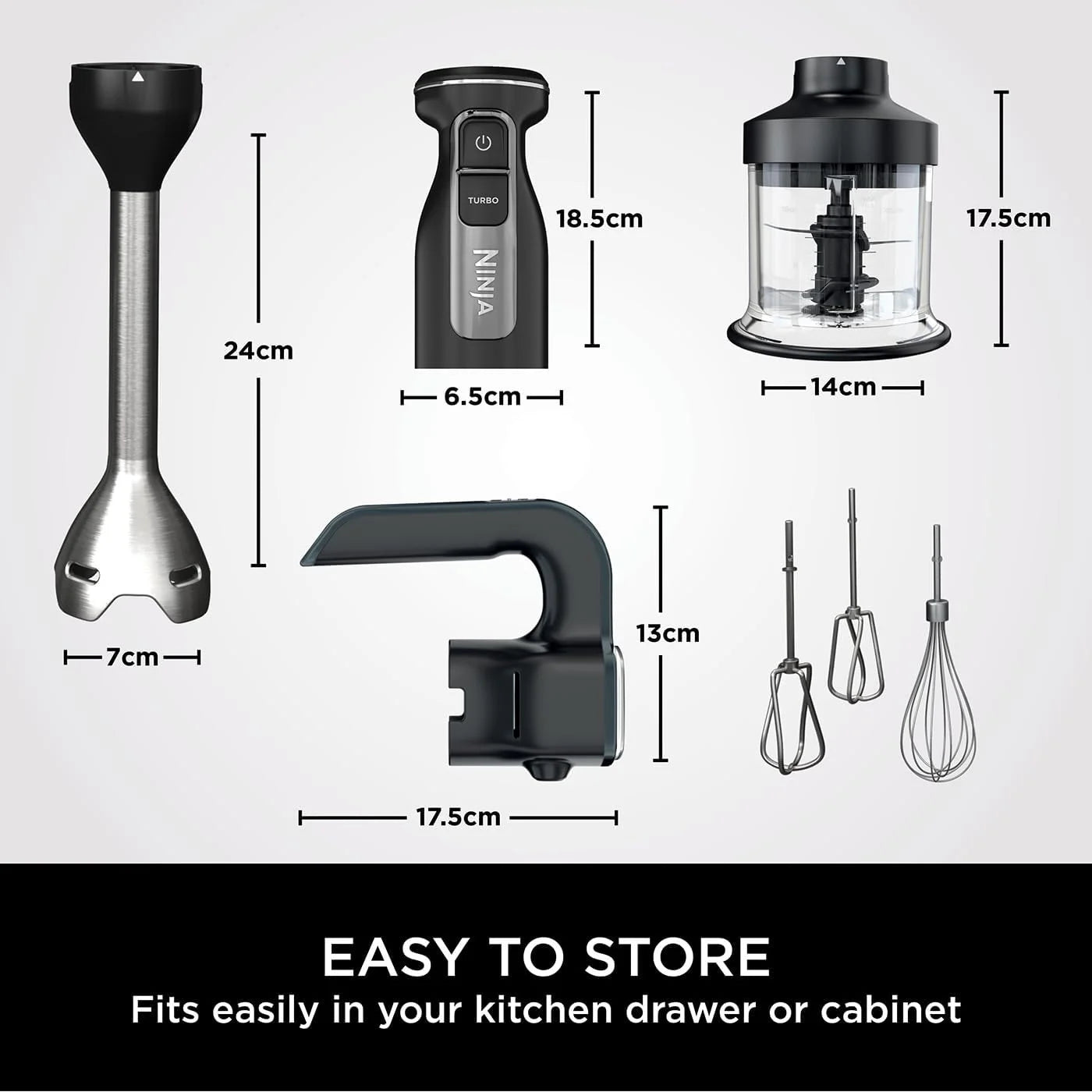 - 9” STAINLESS STEEL IMMERSION BLENDING ARM: Comes with built-in pan guard allowing you to blend directly in deep pots or pans without scratching them
