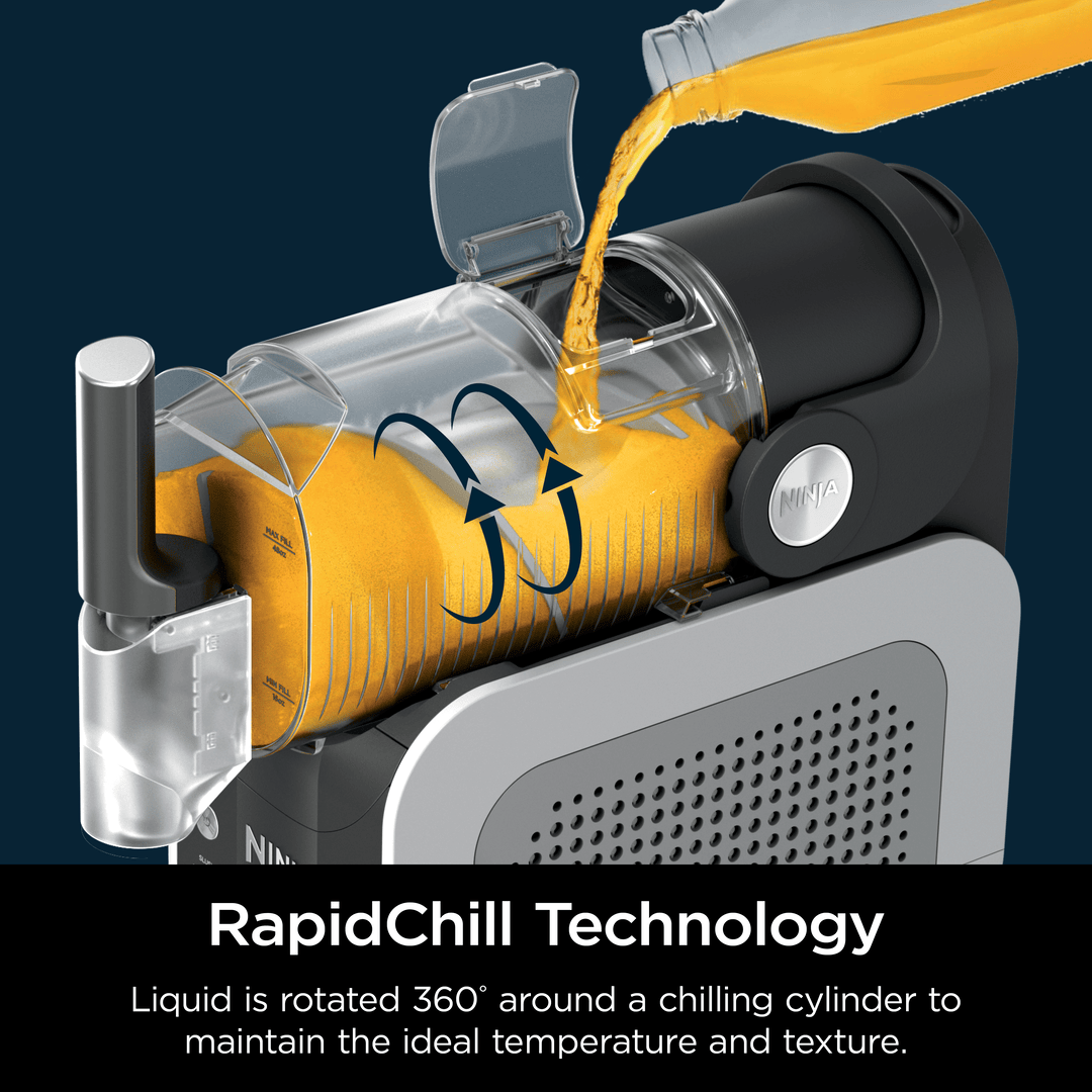 - NO ICE NEEDED: RapidChill Technology freezes liquid evenly for perfect icy treats.